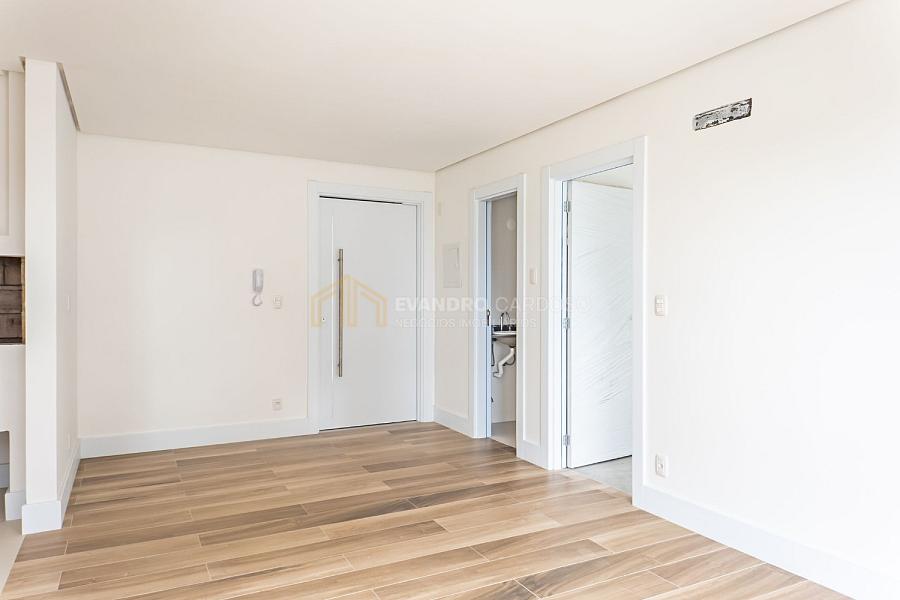 O apartamento possui 49,09 m² de área privativa, distribuídos em ambientes amplos e integrados. Conta com hall de entrada, lavabo, sala de estar e jantar, cozinha moderna e espaço gourmet com churrasqueira. A área íntima é composta por uma suíte com banho privativo e sacada, além de dois dormitórios adicionais com banheiro americano, proporcionando conforto e funcionalidade para toda a família. A área de serviço é independente, e o projeto valoriza a luminosidade natural e o conforto térmico, com esperas para calefação e ar-condicionado split.